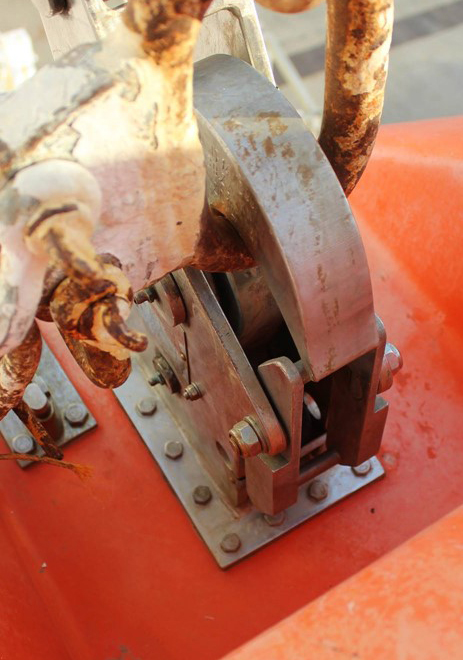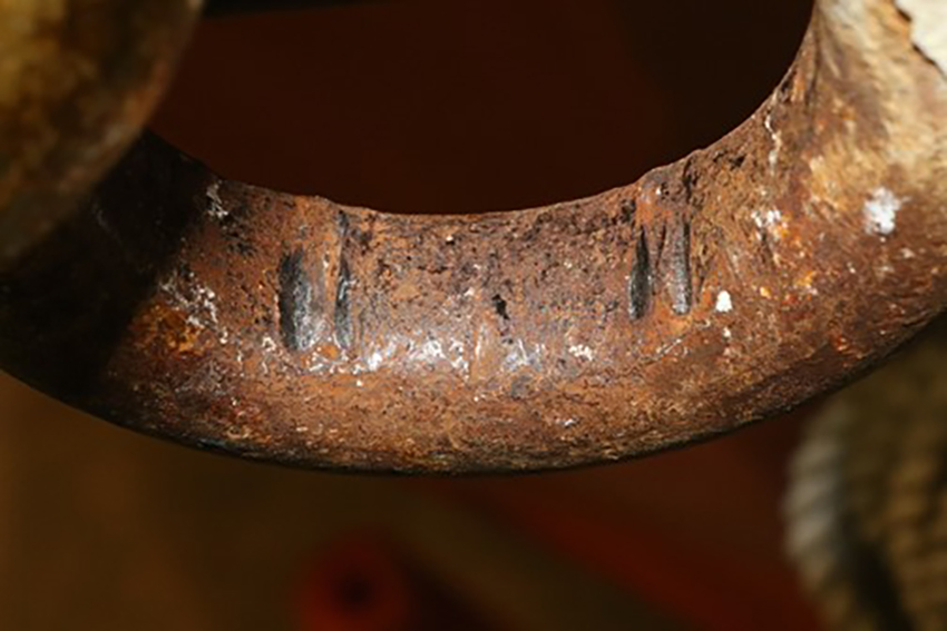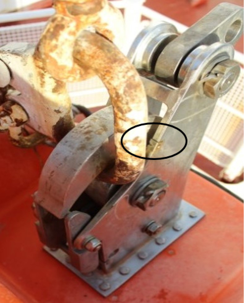 The end links used in this occurrence were part of the originally fitted davit, and had a cross-section diameter of 28 mm.