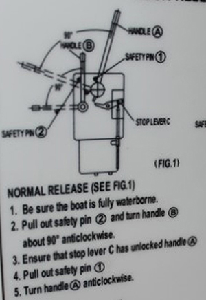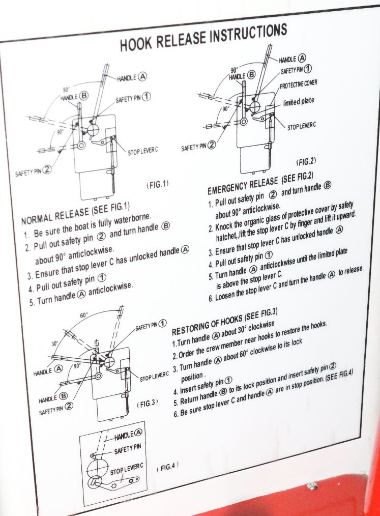 The instructions for the on- or off-load release mechanism (Figure 6) are posted inside the lifeboat and state:
