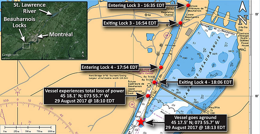 On 04 August 2017, at 0330, during an approach to the Eisenhower Lock in the St. Lawrence Seaway, the vessel had experienced a bow thruster failure, and auxiliary generator No. 3 went offline. This occurrence was attributed to the bow thruster's thermal overload protection system.