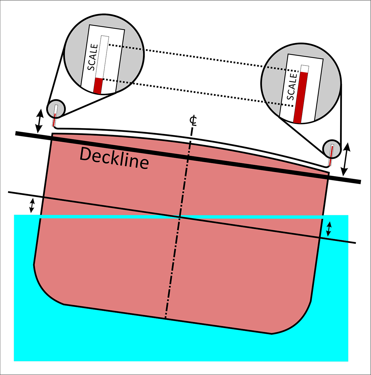 Because of the cargo's high loading rate (3000 to 3500 metric tonnes per hour) and the seaway draft restrictions, the drafts had to be closely monitored during the trimming stage. The master therefore ordered the chief officer to install a manometer on the main deck centred between fore and aft and extending from port to starboard (Figure 2). The manometer was filled with a solution of water and antifreeze.Footnote 4