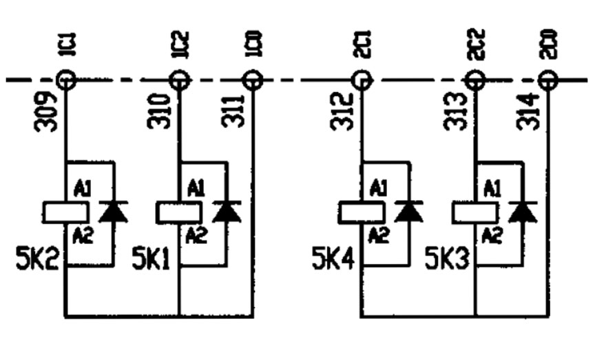 Relay contacts are subject to large voltage and current surges when switching inductive loads, such as to direct-current solenoids. When the contacts open, it is important that surges be absorbed (e.g., with a diode) to protect the contacts. The Chem Norma's steering control electrical system did not have provisions or countermeasures to protect the control relays' contacts from voltage and current surges (Figure 2); however, the control relays' power coils were protected by a diode connected in parallel to them (Figure 3).