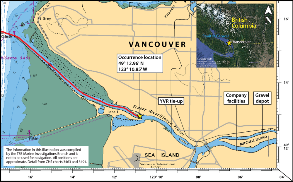 On 13 August 2018, just after midnight,Footnote 2 a crew of 4 arrived at the Ledcor Resources and Transportation Inc. (Ledcor) facility in Richmond, BC, to begin their shift. The master, mate, and 2 deckhands boarded the George H Ledcor and prepared the tug to operate between the Fraser River and Sechelt, towing gravel barges to and from various locations in the Fraser River.