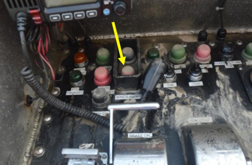 In this occurrence, both the master and the deckhand on watch attempted to use the abort mechanisms on the George H Ledcor, but were unable to do so. The master was not able to reach the button in the wheelhouse due to the heel of the vessel as it was capsizing. The deckhand located and pushed a button on the aft upper deck to release the towline. Subsequent testing identified that the winch brake was still engaged, indicating that the abort mechanism had not been activated.