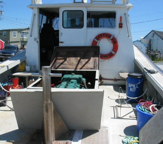 There were 4 hatches and a raised coaming around the engine compartment (Figure 2). Since the Captain Jim was an undecked vessel, the hatches and coaming were designed to be weathertight, but not watertight, and water that entered the vessel accumulated in the bilge.