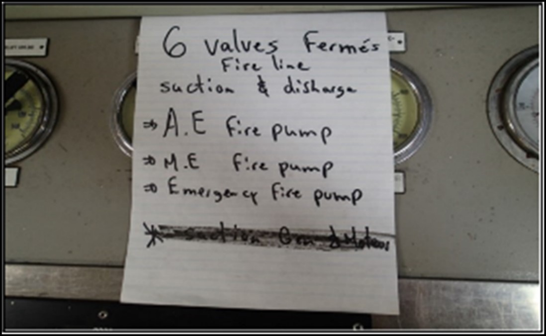 - Some active indicators and switches in the engine control room were covered over with duct tape (Figure G25).