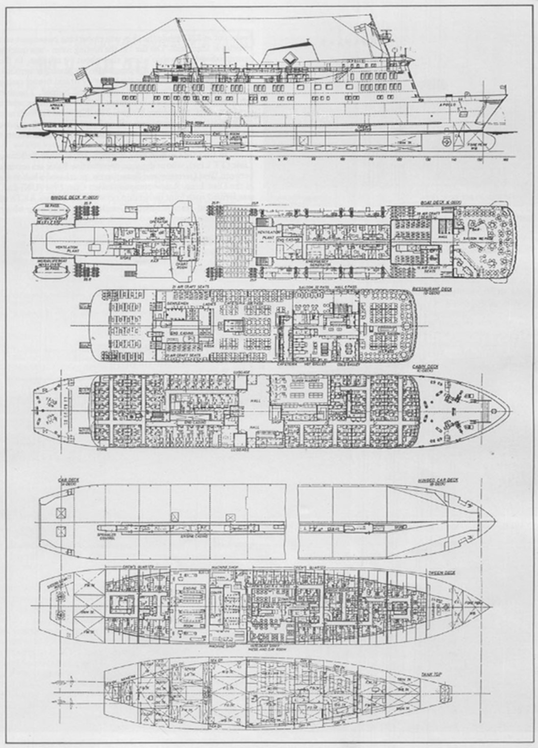 The vessel was originally designed to accommodate 1200 persons and had 222 passenger cabins. At the time of the occurrence, the cabins were no longer in use and had been locked to prevent passengers from entering them. Access points to the cabins had also been blocked off.