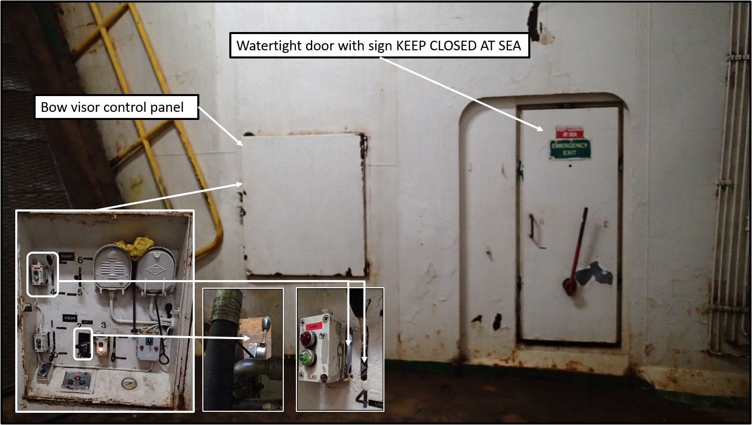 - Of the 2 hydraulic pumps used to operate the watertight hydraulic sliding doors on decks 1 and 2, one was out of service. The out-of-service pump was part of the vessel’s essential equipment and was intended to be supplied by the emergency switchboard in case of blackout. The in-service pump was not supplied by the emergency switchboard and was only working intermittently due to an ongoing issue with its fuse.