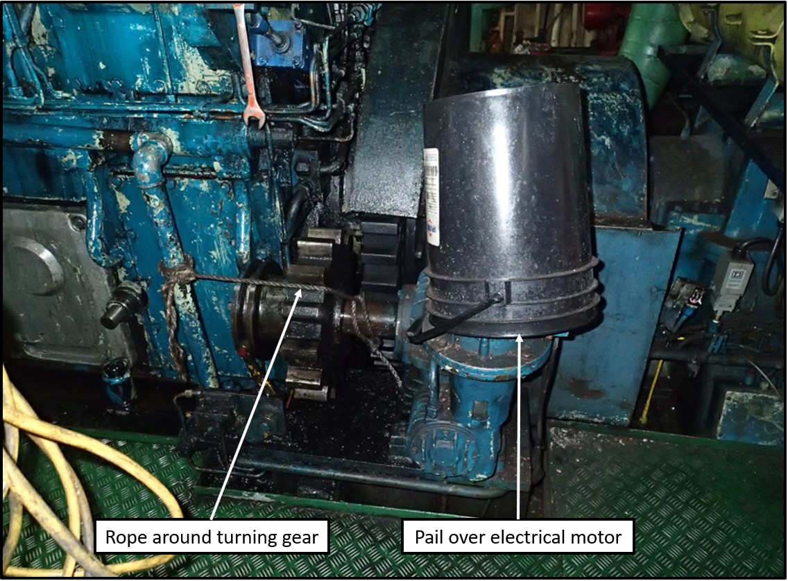 - A rope had been fastened around the main engine’s turning gear to prevent the gear from slipping (Figure G21).