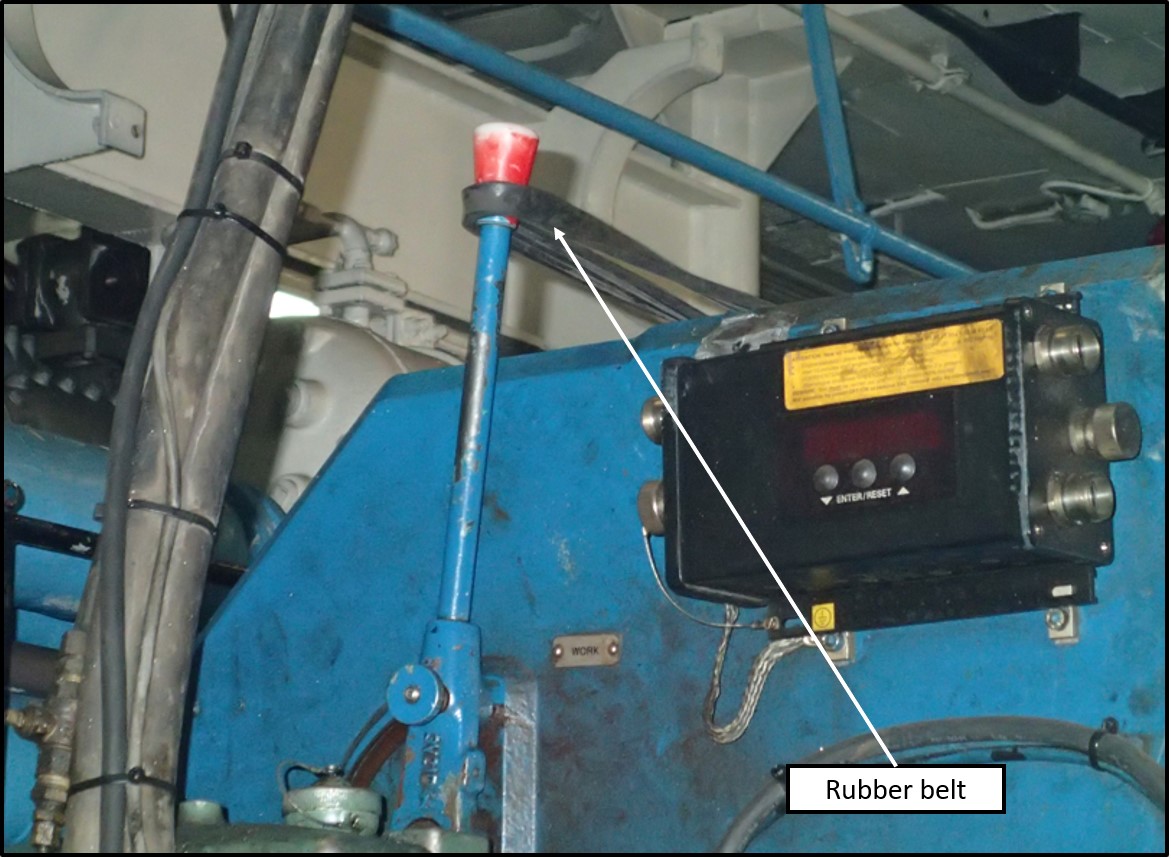 - The stop lever for the port main engine was held in place by a rubber belt (Figure G22).