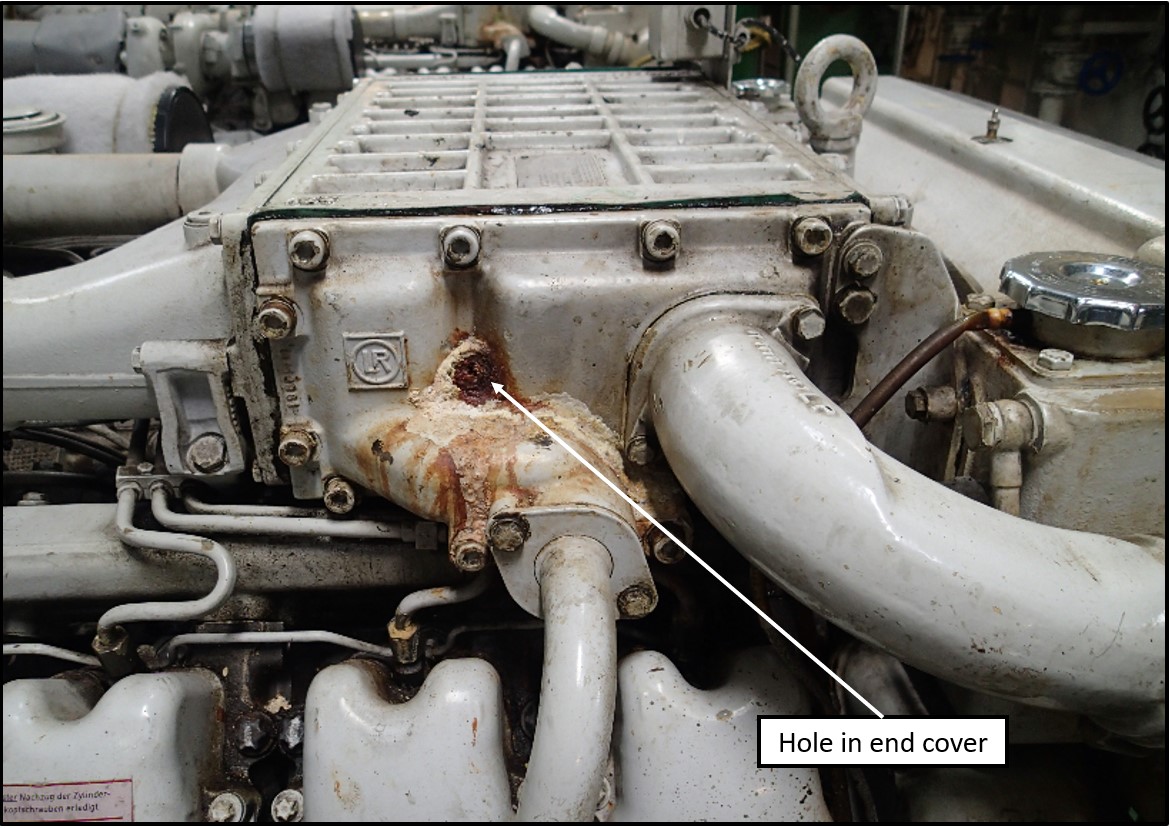 - Corrosion perforations had rusted through the end covers for the intercoolers on the 3 auxiliary diesel engines, and there was rust and salt residue around the holes where sea water had leaked out. The intercoolers use sea water to cool the intake air coming from the turbo compressor and going into the cylinders to increase the engine output (Figure G23).
