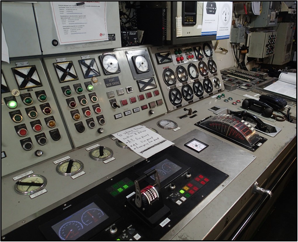- The main panel in the engine control room contained redundant indicators and switches left over from equipment that had been replaced or was no longer in use (Figure G24).
