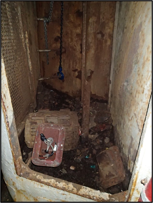 - A pail had been placed over the turning gear electrical motor to protect it from leaks (Figure G21).