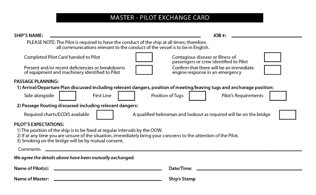 Appendix B – Pacific Pilotage Authority master-pilot exchange card