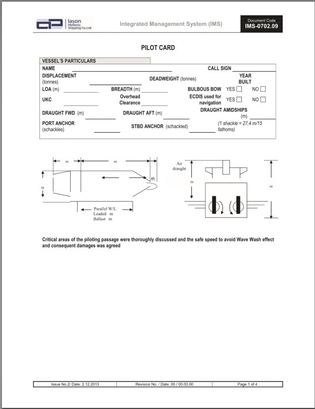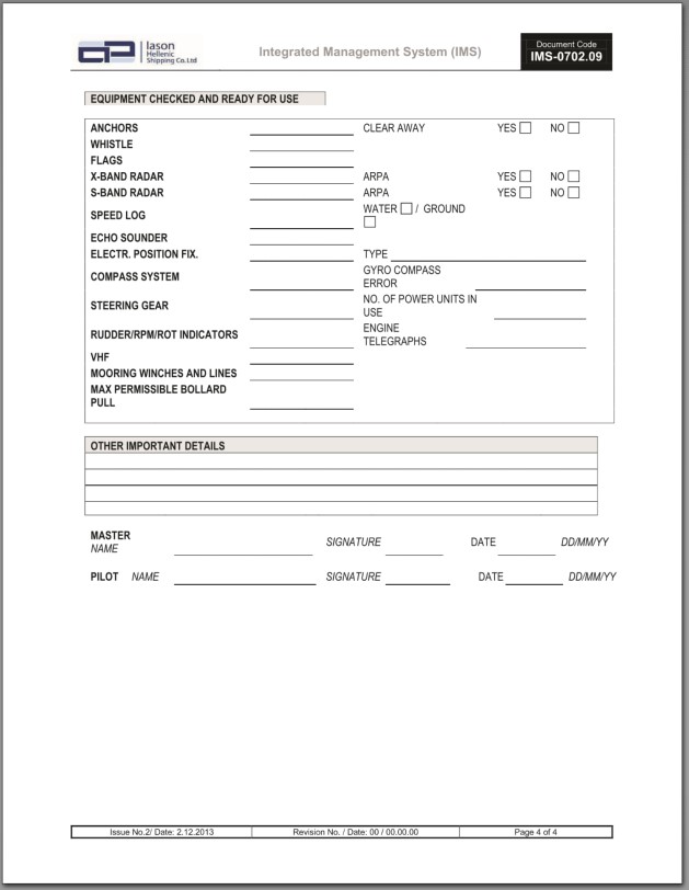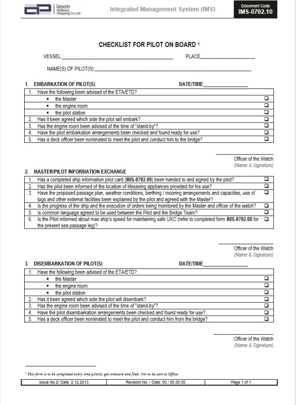 Appendix D – Company’s checklist for pilot on board