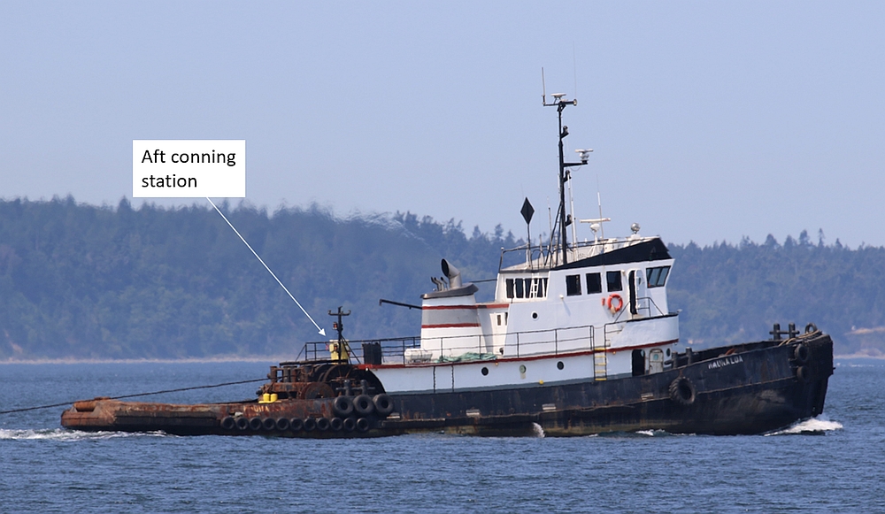 The wheelhouse contains a conning station with navigation equipment and machinery controls. A second conning station is located on the aft starboard side of the deck (Figure 1). This conning station faces aft and contains controls for the engine, bow thruster, steering, and towing pins. The tug is registered in the United States (U.S.) and is owned and operated by Salmon Bay Barge Line, Inc.