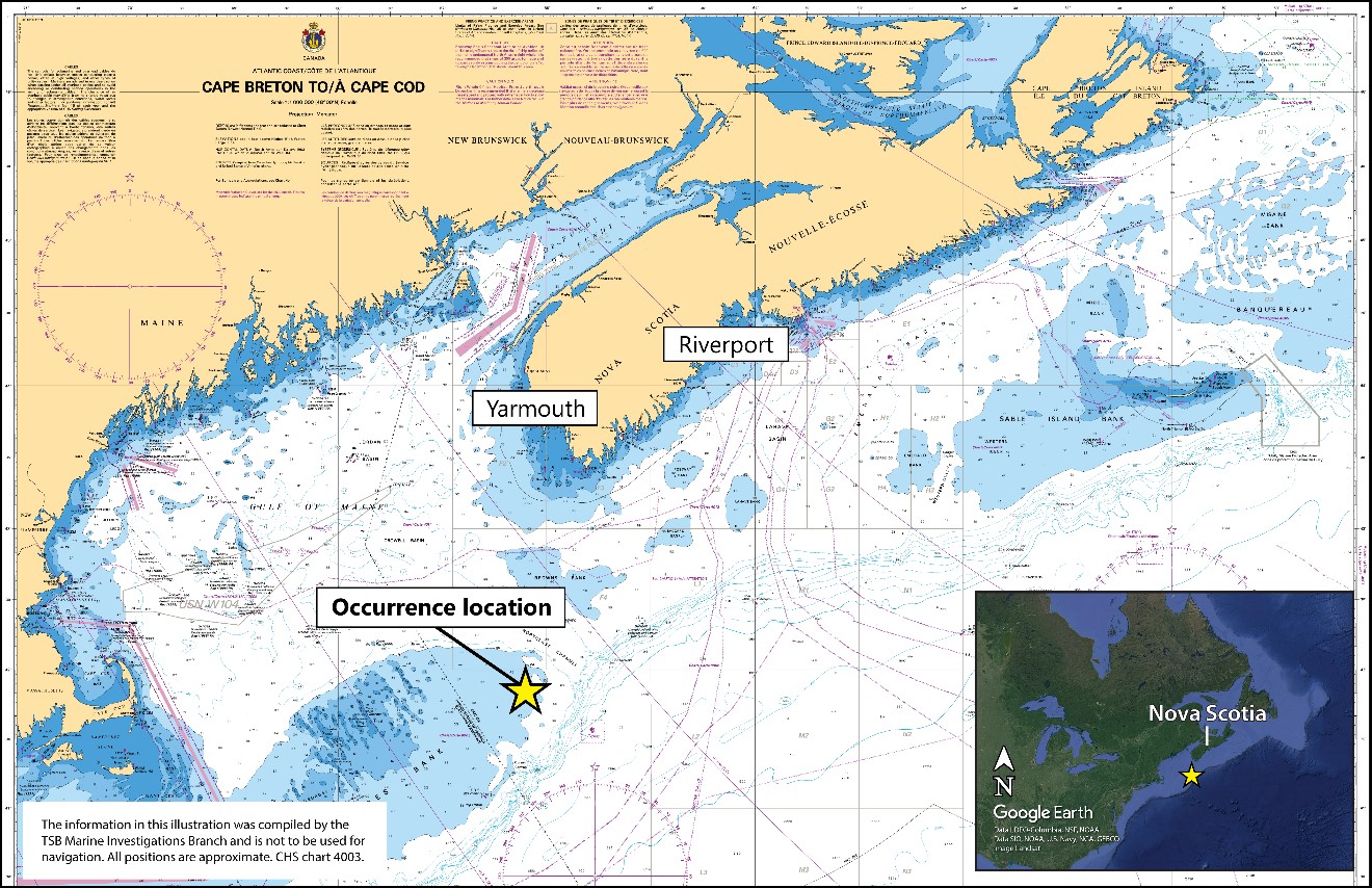 At 2008, the Atlantic Preserver relayed the distress call to the Canadian Coast Guard (CCG) Marine Communications and Traffic Services Centre in Halifax, Nova Scotia.