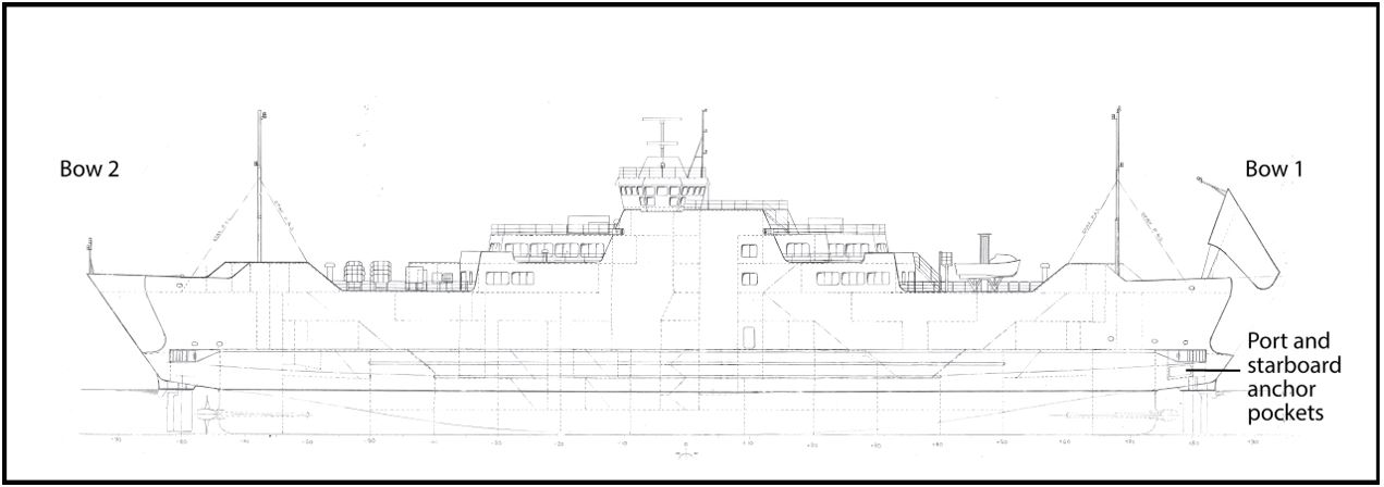 - from 1 of the 2 identical steering positions located at the centre of the bridge, one facing Bow 1 and the other facing Bow 2 (Figure 2); whichever one is forward-facing is used when the vessel is underway; and