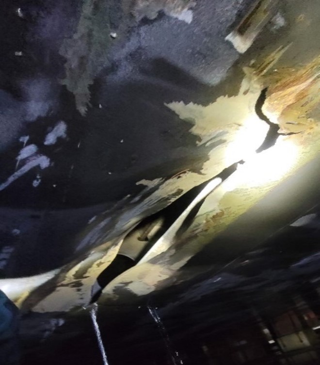 Damage to the vessel, viewed from the exterior (Source: Coastal Shipping Limited)