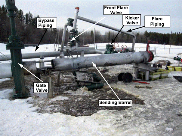 - Due to the leaking front flare valve, continual product migration past the pipeline isolation gate valve and into the sending barrel had been occurring for at least eight months before the occurrence.