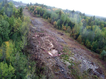 The failure site was located on a high spot of undulating land that was well drained and surrounded on both sides by boreal forest. The TransCanada pipeline easement is located on Crown Land. During the rupture, a portion of a cathodic protection groundbed and the power distribution system for the cathodic protection system were damaged.