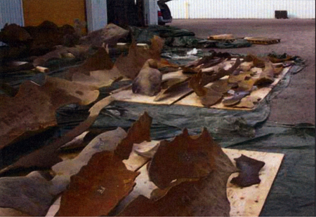 The upstream and downstream fracture arrests were cut off the ends of the pipe and retained for further examination. More than 40 pieces of pipe were also collected (see Photo 4).