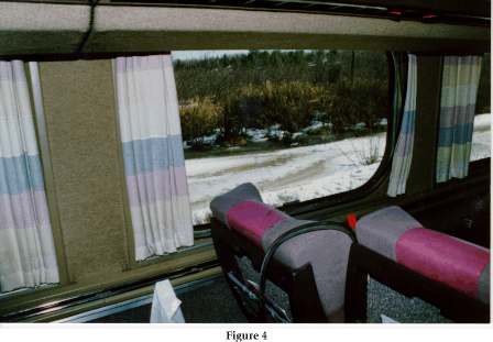 4. the interference to window access and removal as a result of baggage rack placement and seat design (seats rotated to the reverse position block window area).