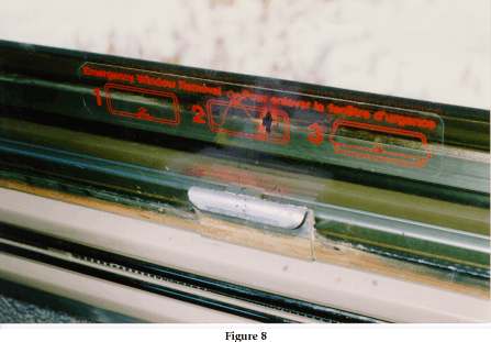 8. the force required to remove the emergency window gasket varied considerably and in some cases was beyond the capabilities of passengers of average strength;