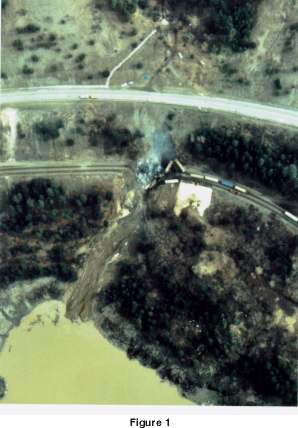 Fire again erupted around the locomotives at 0500, 29 March 1997, and took several hours to extinguish. At 0530, 30 March 1997, the clean-up operation was terminated, and employees were evacuated from the site when the highway cracks were noted to be widening. When the size of the cracks remained unchanged for a period of 5 ½ hours, work resumed. The rest of the clean-up and restoration was uneventful.