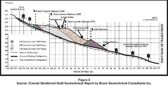 10. The unstable fill condition was attributable to moisture-sensitive alluvial deposits located in the heart of the railway subgrade as a consequence of the limitations of construction capabilities and a lack of understanding of soil characteristics at the time of construction (circa 1900).