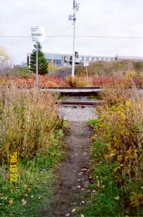 Well-worn footpaths traversing the tracks were observed leading into the grounds of the recreational facilities on the east and west sides of Gaboury Boulevard, and into the grounds of the high school. The most frequented footpath was located at the north-east corner of the school yard which crosses the track at the industrial spur switch at Mile 105.94 (Figures 5 and 6). There were also several footpaths in the area of the west lead switch for yard track RJ-21, and near the Jacques-Cartier Boulevard overpassFootnote 3.