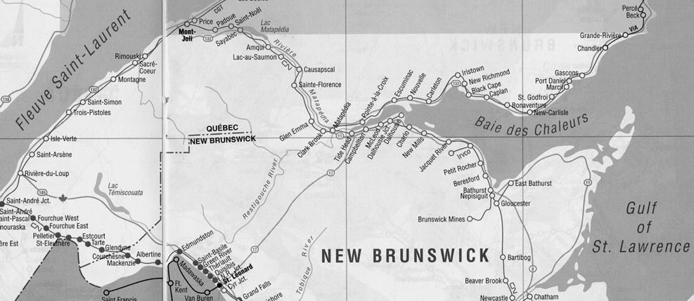 | VIA | Charny, Quebec New Carlisle, Quebec Campbellton, New Brunswick |