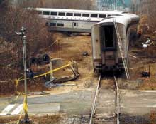 Upon impact, the locomotive and four passenger coaches derailed to the north of the main track and west of Fourth Line Road. The derailed locomotive became disengaged from its trucks, rolled onto its side and rotated 180 degrees, eventually stopping 395 feet west of the crossing parallel to the main track. The dump truck was thrown westward 120 feet and catapulted southward approximately 33 feet. Fuel oil was spilled from both the locomotive and the dump truck fuel tanks, but did not ignite.