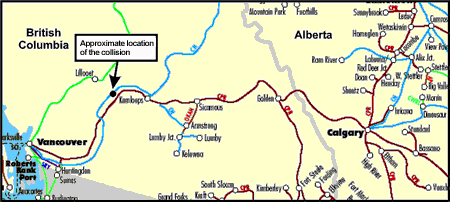 On 13 December 2000, at 0937 Pacific standard time (PST),Footnote 1 a Canadian National Railway (CN) maintenance-of-way (MOW) crew received a track occupancy permit (TOP) from a rail traffic controller (RTC) to occupy the main track between Basque and Martel, British Columbia, on the CN Ashcroft Subdivision (Figure 1).