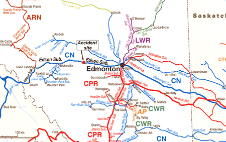 VIA Rail Canada Inc. (VIA) passenger train No. 1, comprising two locomotives and nine passenger cars, departed Edmonton, Alberta, destined for Vancouver, British Columbia, on Canadian National's (CN) Edson Subdivision. There were 16 VIA personnel and 86 passengers aboard the train. Figure 1 shows the location of the accident site.