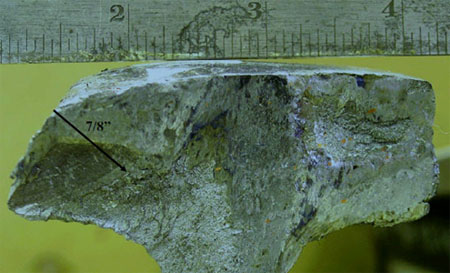 The size of a detail fracture is commonly recorded as the percentage of head area of a new or unworn rail. Of the rail recovered from the derailment, the largest detail fracture was 20 per cent of new head area.