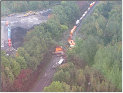The train derailed when it struck a thick layer of sensitive clay that had slid down from the terrain north of the track. The analysis will focus on the factors that contributed to the landslide, inspection of the track and adjacent area, and applicable legislation regulating non-railway activities in areas adjacent to the railway right-of-way.