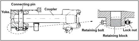 - The train separated when the coupler pin retaining bolt in the yoke/coupler connection of the trailing end coupler of car CNIS 623151 likely failed and the coupler was pulled away from the yoke.