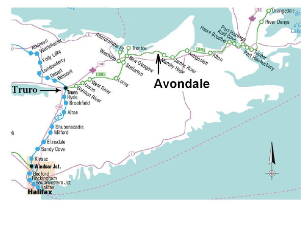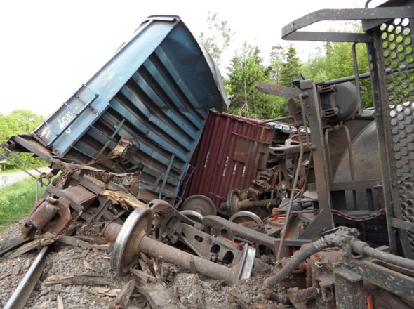 On 13 June 2010, at approximately 1359 Atlantic Daylight Time, a Cape Breton and Central Nova Scotia RailwayFootnote 1 (CBNS) freight train travelling westward at 24 mph derailed, damaging 15 rail cars, including 8 tank cars (7 loads of liquefied petroleum gas and 1 residue hydrogen peroxide). The derailment occurred at Mile 65.6 of the CBNS Hopewell Subdivision near Avondale, Nova Scotia. There were no injuries or release of dangerous goods. Ten residences were evacuated for approximately 1 week. The TSB investigated the derailment at the request of the provincial government.