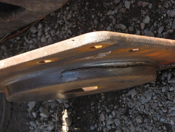 The B-end truck center plate had abnormal side wall wear on the truck center plate bowl ring vertical surface (see Photo 3a and Photo 3b). The body center plate had its vertical surface built up with heavy weld (see Photo 3c and Photo 3d). The weld ends were not ground to match the original contour as per Association of American Railroads (AAR) and PROCOR Limited (PROCOR) requirements, which state: