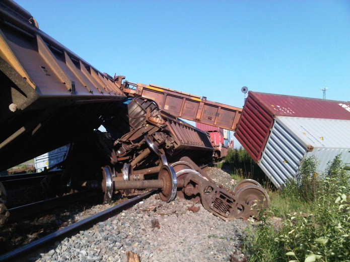 At 0625Footnote 1 on 23 June 2011, train Q10131-21 (train Q101), proceeding westward on the north main track of the Wainwright Subdivision collided with the tail end of stationary train A41751-23 (train A417) at Mile 262.76 in Edmonton, Alberta (Figure 1). The collision resulted in the derailment of 2 intermodal flat cars of train 417 (3 platforms) and locomotive CN 2234 of train Q101 being damaged. In total, 6 empty containers and 2 containers loaded with waste paper and metal scrap were damaged (Photo 1). No dangerous goods were involved.