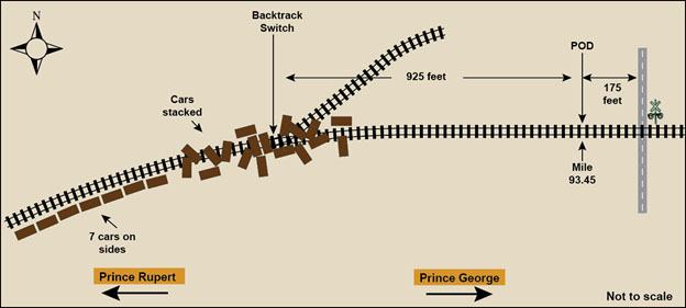 The Nechako Subdivision begins at Prince George (Mile 0.0) and extends westward ending at Endako (Mile 115.4). Train movements on this subdivision are governed by the Centralized Traffic Control System (CTC) as authorized by the Canadian Rail Operating Rules and supervised by a rail traffic controller located in Edmonton, Alberta. The zone speed for freight trains through the derailment area was 45 mph.