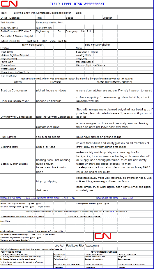 - The track maintainers must be included in the job briefing, and assurance must be given that everyone understands the instructions. In addition, hazard assessments must be done clearly and concisely on the day that the work is taking place, and every employee must sign it.