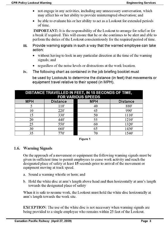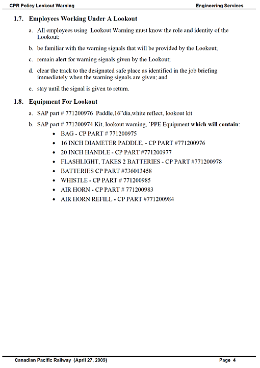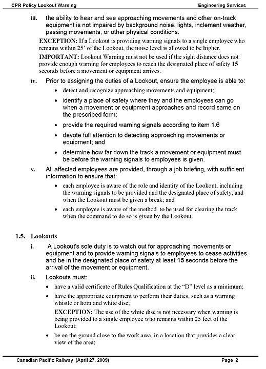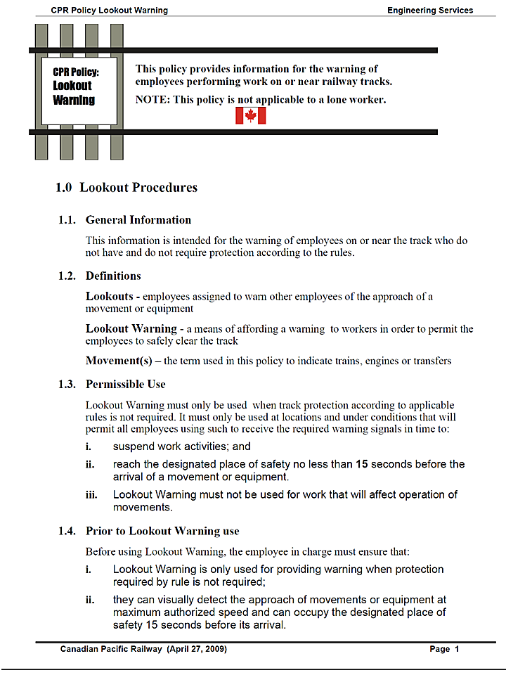 In 2001, when CN adopted the use of this track worker protection, written guidelines were established within CN's General Engineering Instructions (GEI). These guidelines were revised in 2006 and in 2009.