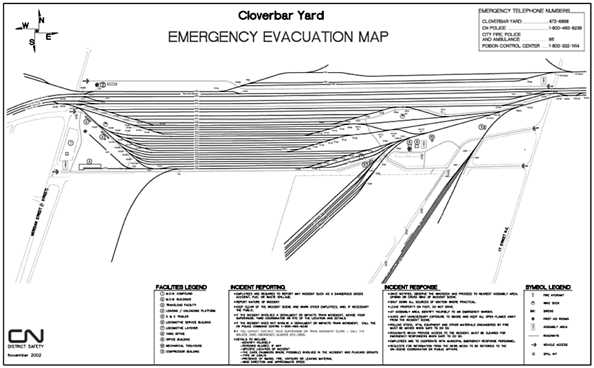 Appendix A – Clover Bar evacuation map (actual size of map provided to A&B Rail Services employees)