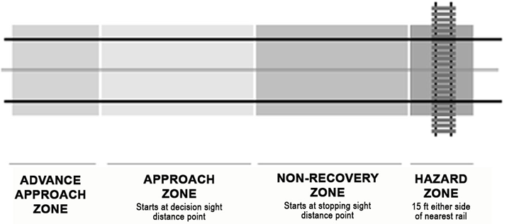 Studies have demonstrated that lower-cost, active advance warning signs are effective at decreasing approach speeds and collisions at passive level crossings.Footnote 38 These studies suggest that the key to improving passive crossing safety is to equip more crossings with such devices in order to attract driver attention and provide drivers with advance warning of an approaching train. This would be especially true at locations where sightlines are less than optimal. Several promising systems have been tested: