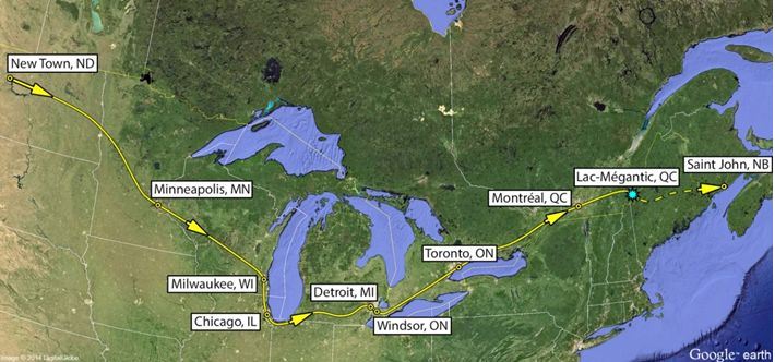 On the evening of July 5, 2013, at about 10:50 p.m., a Montreal, Maine & Atlantic Railway (MMA) train arrived at Nantes, Quebec, carrying 7.7 million litres of petroleum crude oil in 72 Class 111 tank cars. Originating in New Town, North Dakota, these were bound for Saint John, New Brunswick.