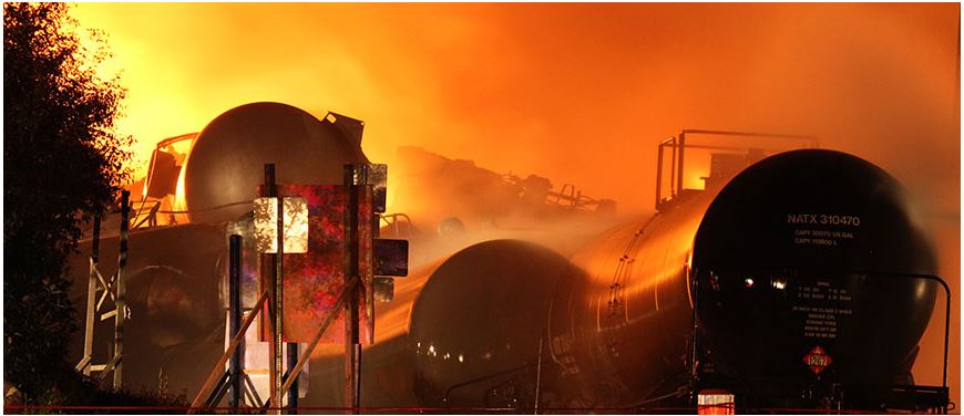 When the tank cars were breached, the petroleum crude oil was released, fuelling the fire. The damage to the tank cars could have been reduced by enhanced safety features. This is why the TSB called for tougher standards for tank cars carrying flammable liquids.