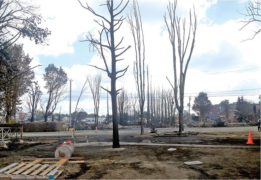 Almost all of the 63 derailed tank cars were damaged, and many had large breaches. About six million litres of petroleum crude oil was quickly released. The fire began almost immediately, and the ensuing blaze and explosions left 47 people dead. Another 2000 people were forced from their homes, and much of the downtown core was destroyed.