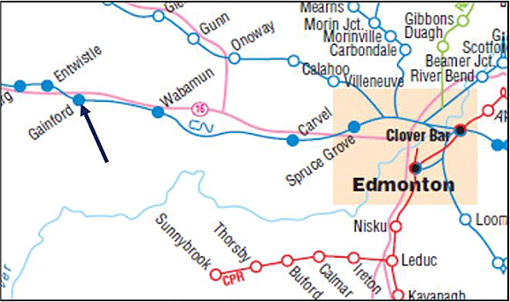 Gainford siding is a 16 896-foot-long, bonded,Footnote 6 signalled siding with a permissible speed of 25 mph. This siding is 1 of 7 signalled sidings on the Edson Subdivision. In 2013, the Edson Subdivision carried about 100 million gross tons (MGT) of traffic, with about 12 to 15 MGT travelling through Gainford siding.