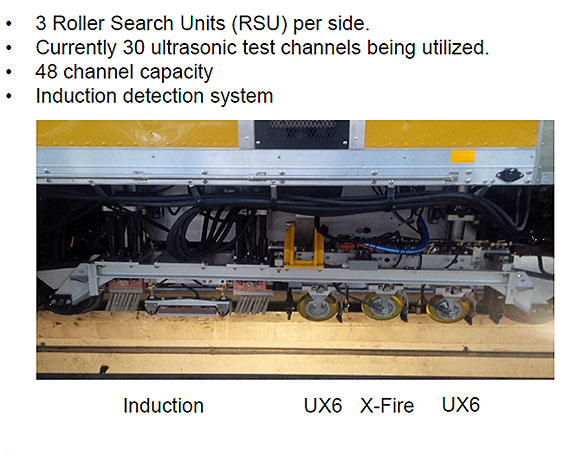 • In addition to the ultrasonic method, SRS also employs electromagnetic (induction) technology. In the past, induction equipment was too large to mount on hi-rail vehicles, but SRS has developed an induction system that operates on a hi-rail platform. Today, 60% of SRS's fleet is equipped with induction technology. Both ultrasonic only or ultrasonic/induction technology in normal operation will typically test in the range of 5 to 20 mph, depending on the environment and condition of the track.
